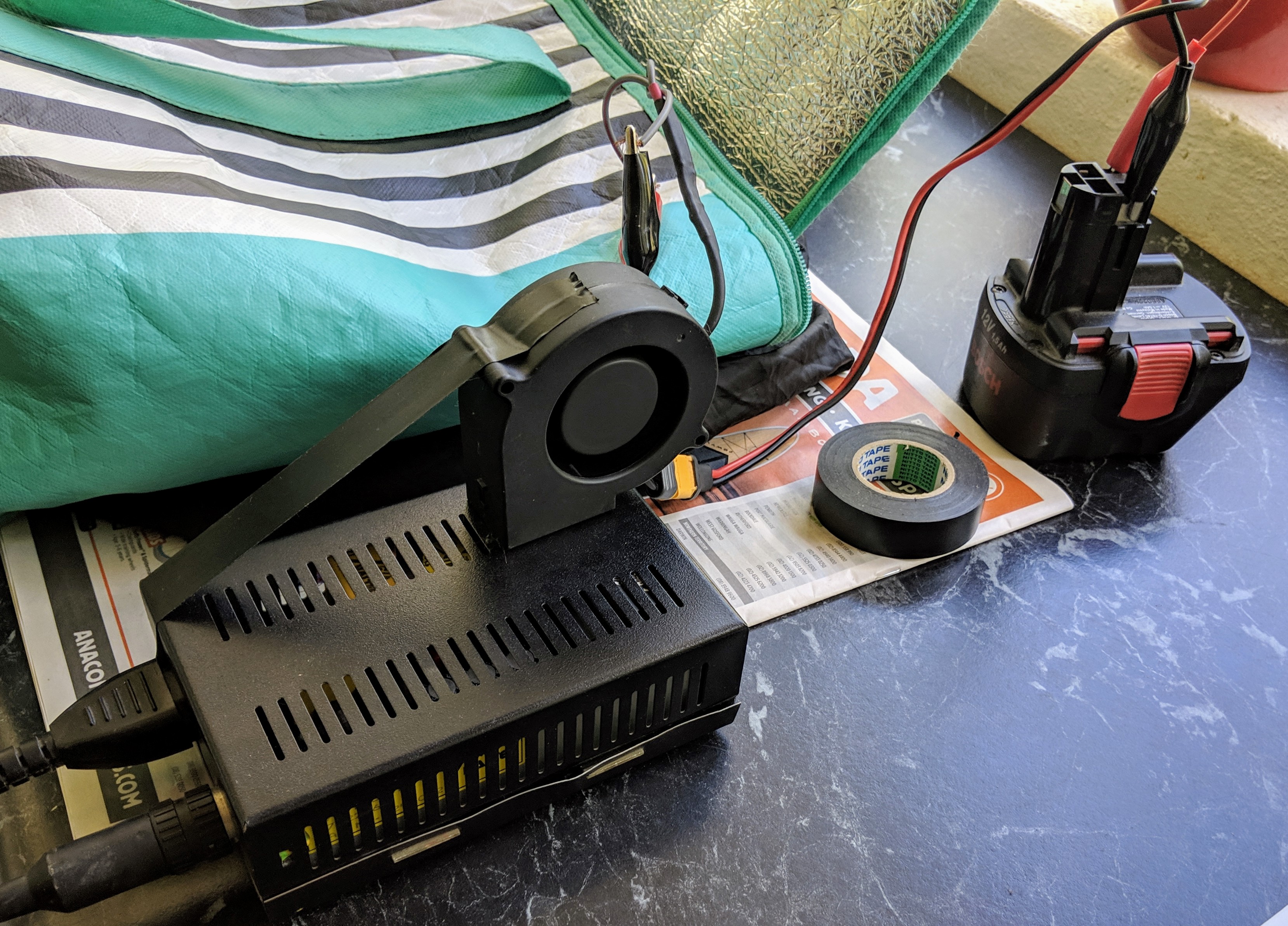 Anyway, on with the show. I rested a small PC fan on top of the power supply blowing in through the vents and powered up once more.