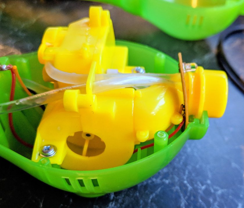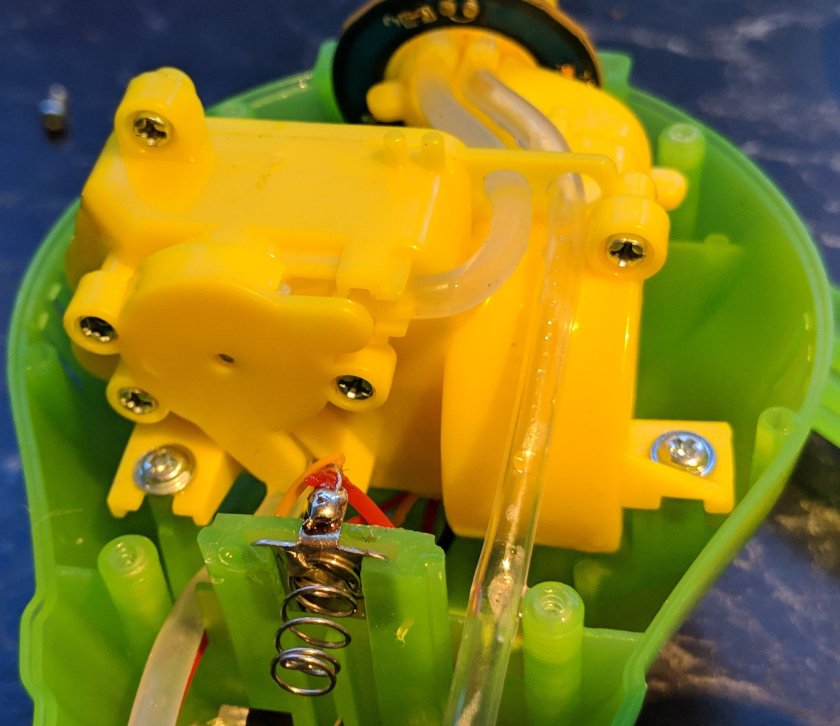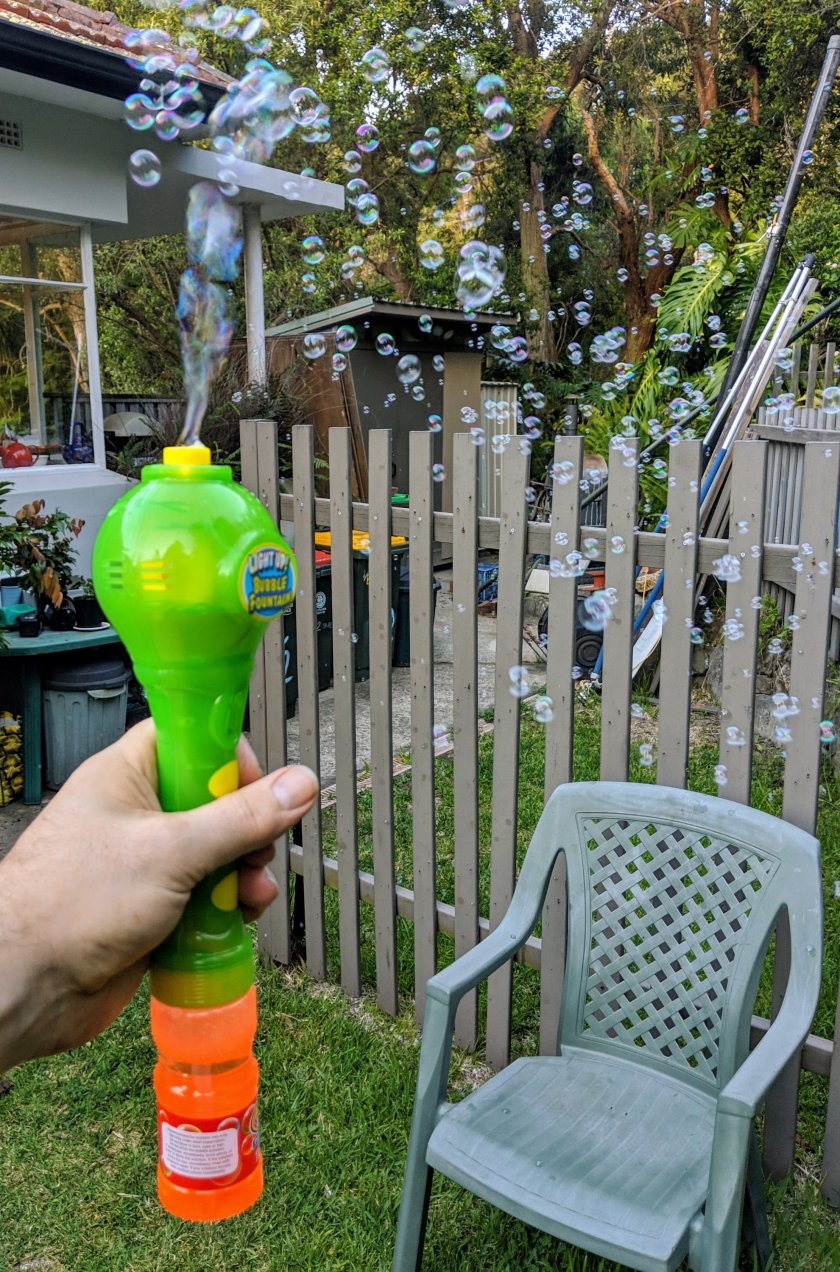 First test with some half flat AA cells produced a louder than expected stream of bubbles that continued in the face of wind gusts and rapid movements as I tried to find its limits. After 15 minutes and clouds of bubbles I got bored and called it a success.
